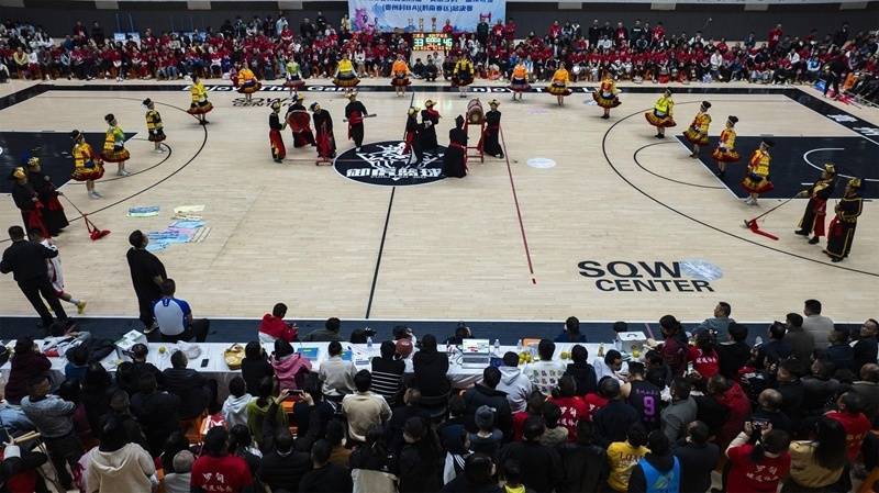 决赛期间,来自广西、贵州、山东等地的扣篮高手到场为现场观众带来了精彩刺激的扣篮表演。此外,逢亭镇、沫阳镇现场表演了苗族非遗舞蹈《芦笙舞》《猴鼓舞》,展示红苗服饰,不仅为紧张激烈的赛事增添了浓厚的文化氛围,还让观众领略到独特的民族文化,切身体验非遗文化传播与交流,不断增强赛事的吸引力与影响力。